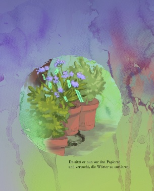 Da sitzt er nun vor den Papieren und versucht, die Wörter zu sortieren.